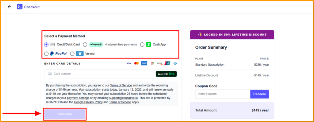 - Complete the payment and get full access to Educative’s course library at a reduced price.